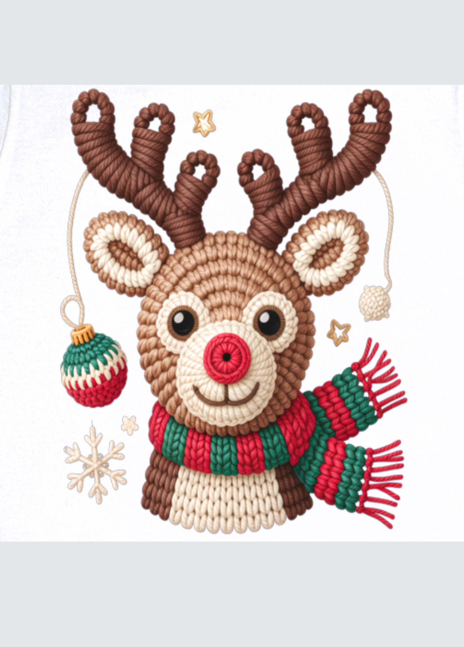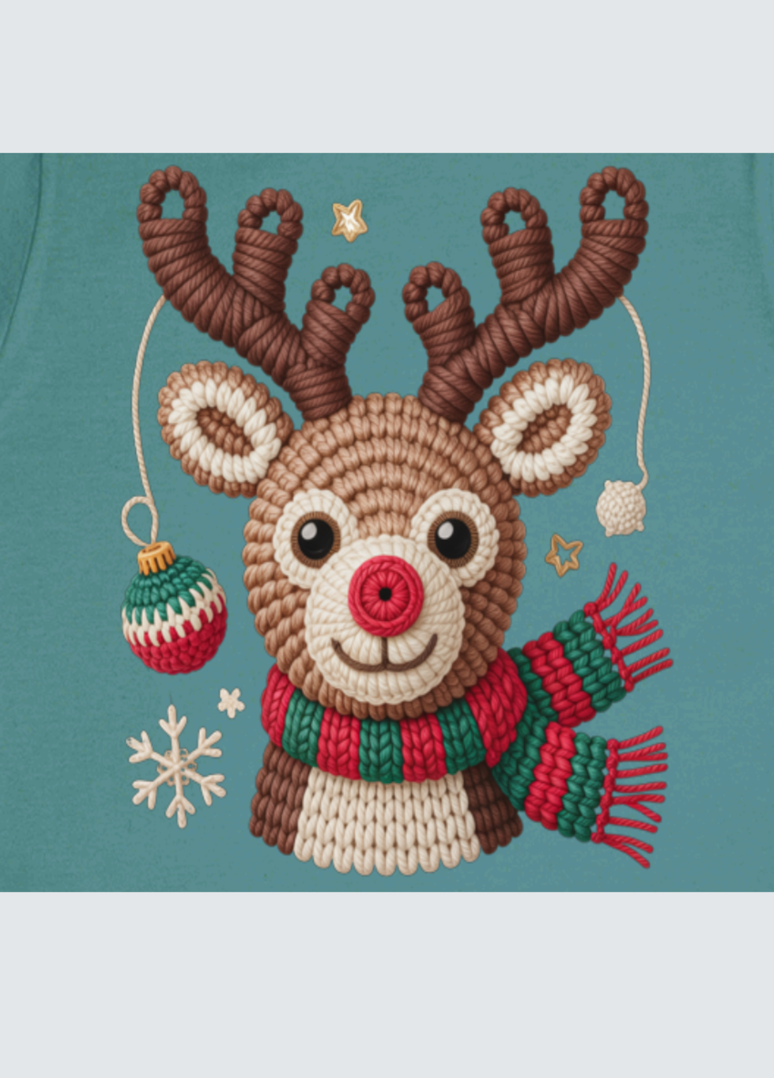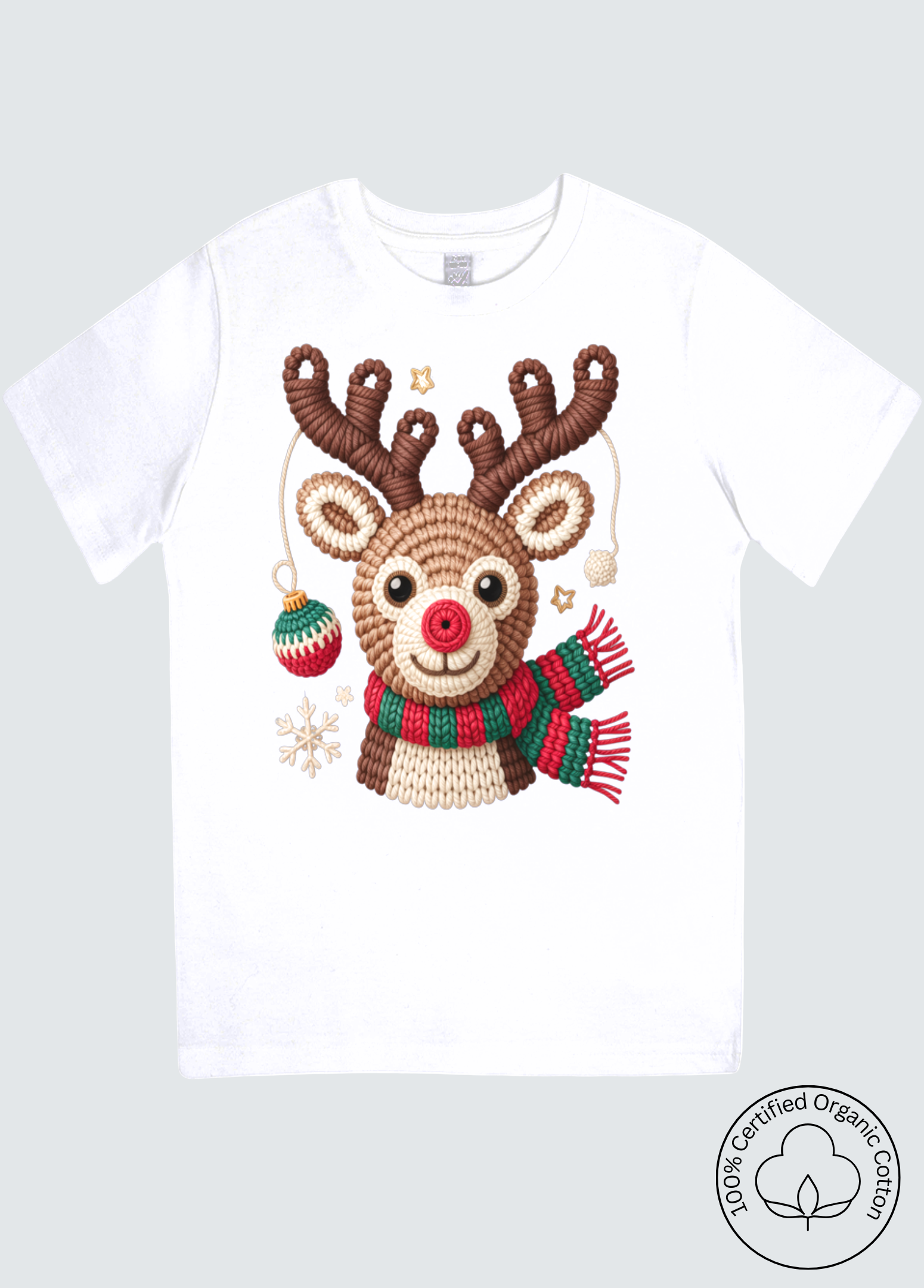 Knitted reindeer print Organic Cotton Tee. The perfect gift for the festive season.
