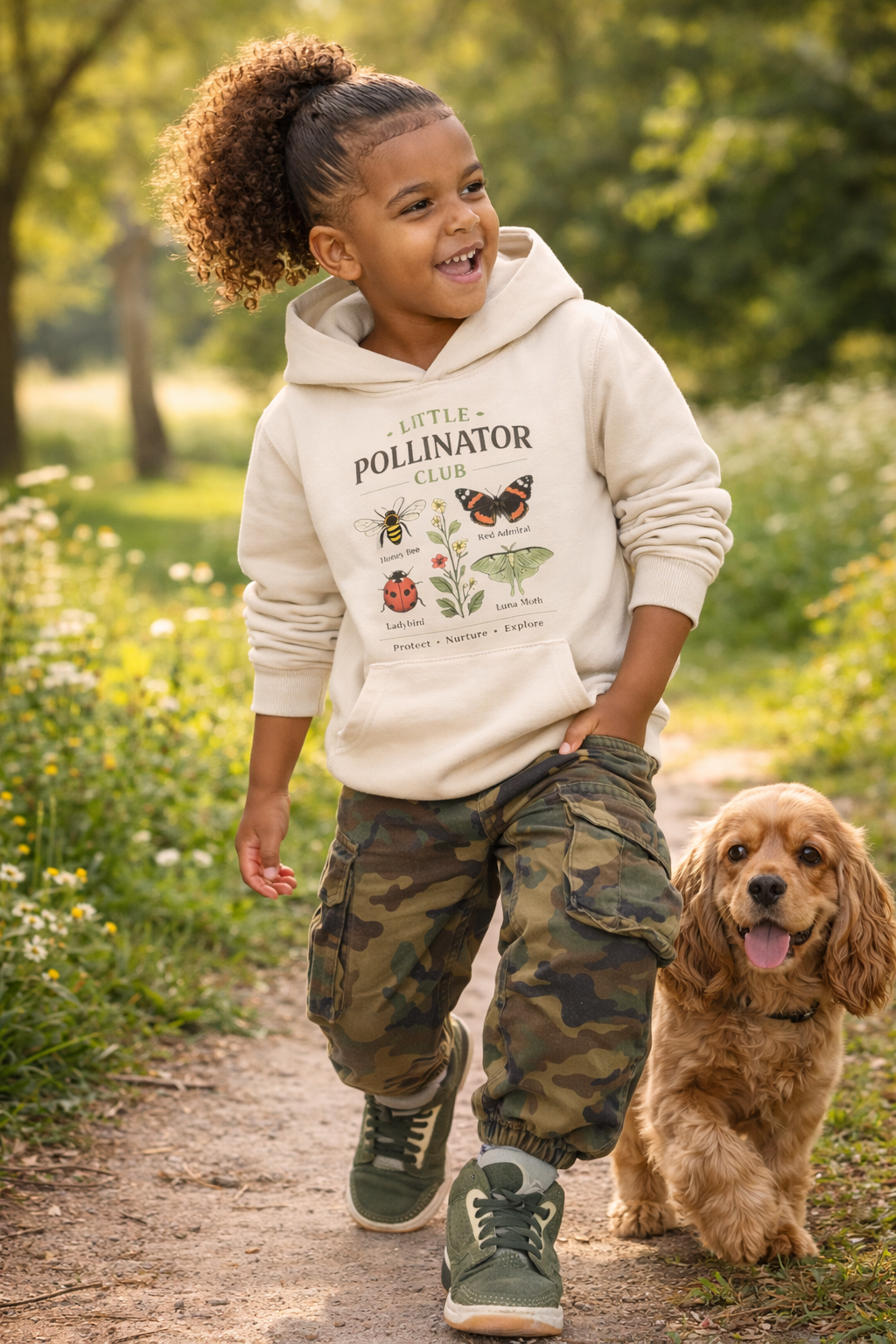 The design is inspired by bees, butterflies and pollination, inviting little ones to feel connected to nature and proud to be part of something bigger